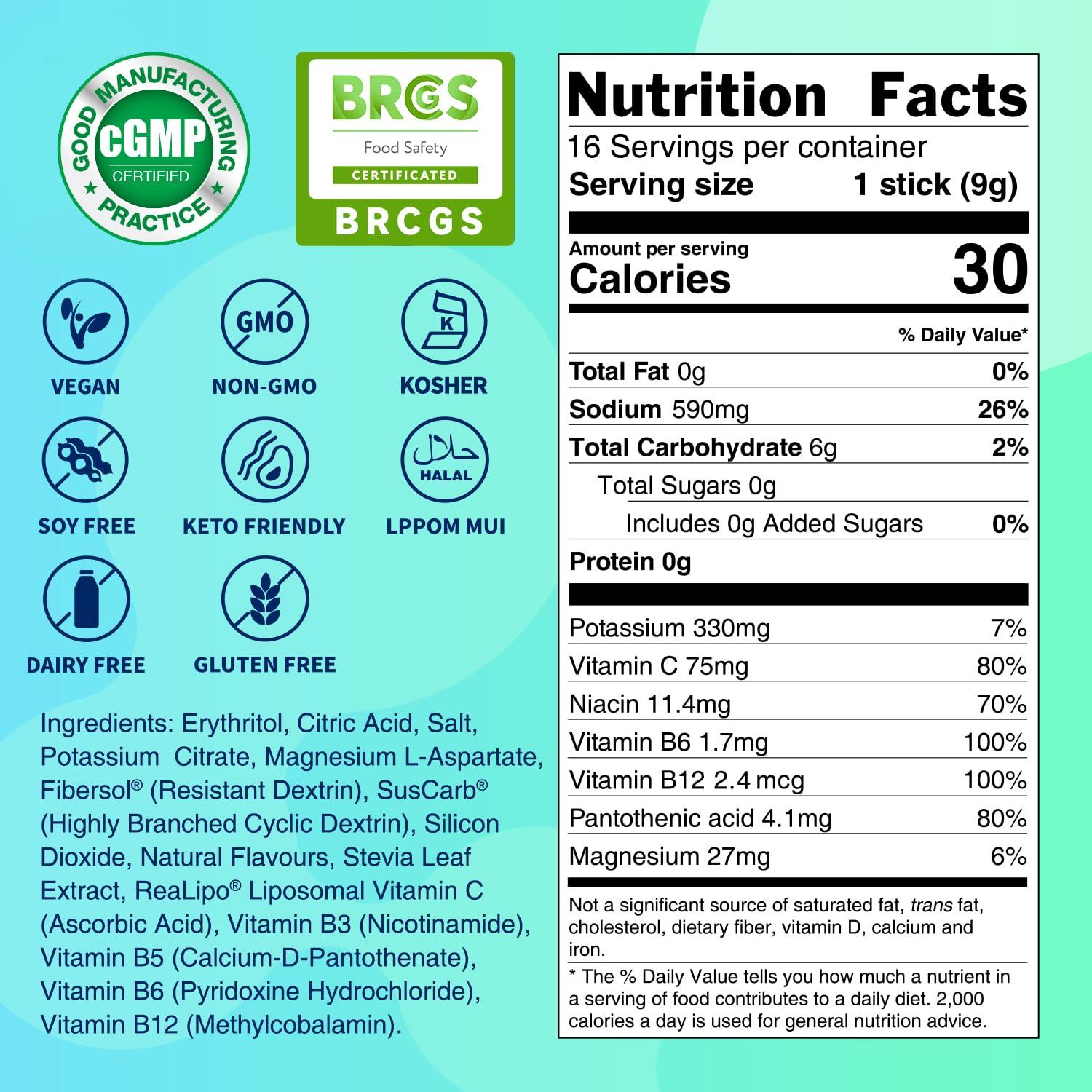 - 3X ELECTROLYTES & 5 VITAMINS: ZestLytes Hydration Max delivers 3x the electrolytes of leading sports drinks. Its 2:1 sodium-potassium ratio, combined with magnesium amino acid chelate (magnesium aspartate), boosts performance, extends exercise duration, and helps prevent muscle cramps. High-performance Realipo Liposomal Vitamin C, Active Vitamin B12, and Vitamins B3, B5, and B6 support stamina and recovery after intense exercise.