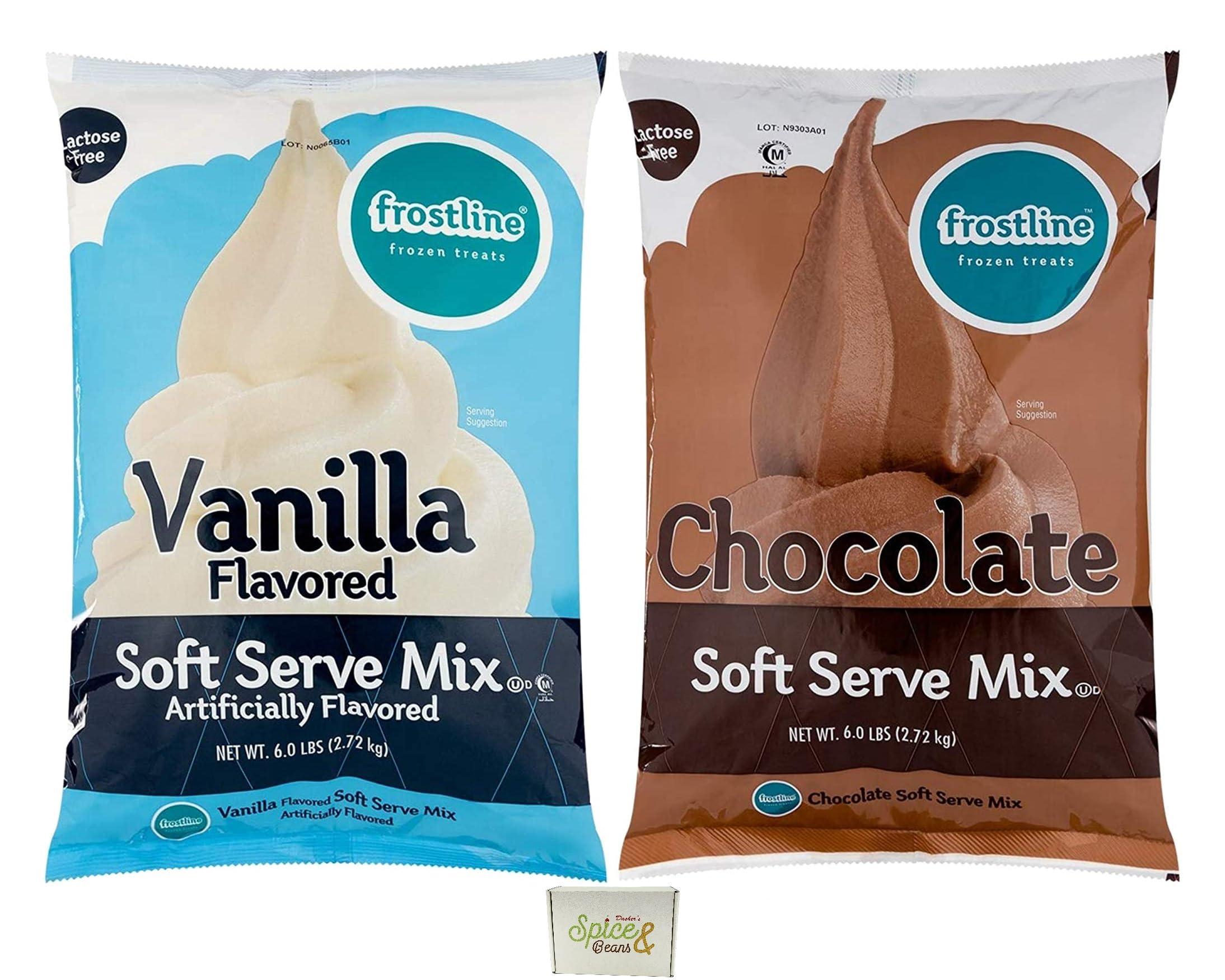 - 1 - 6 pound bag of lactose-free, low fat chocolate flavored soft serve mix 1 - 6 pound bag of lactose-free vanilla flavored soft serve mix (Packaging may vary)