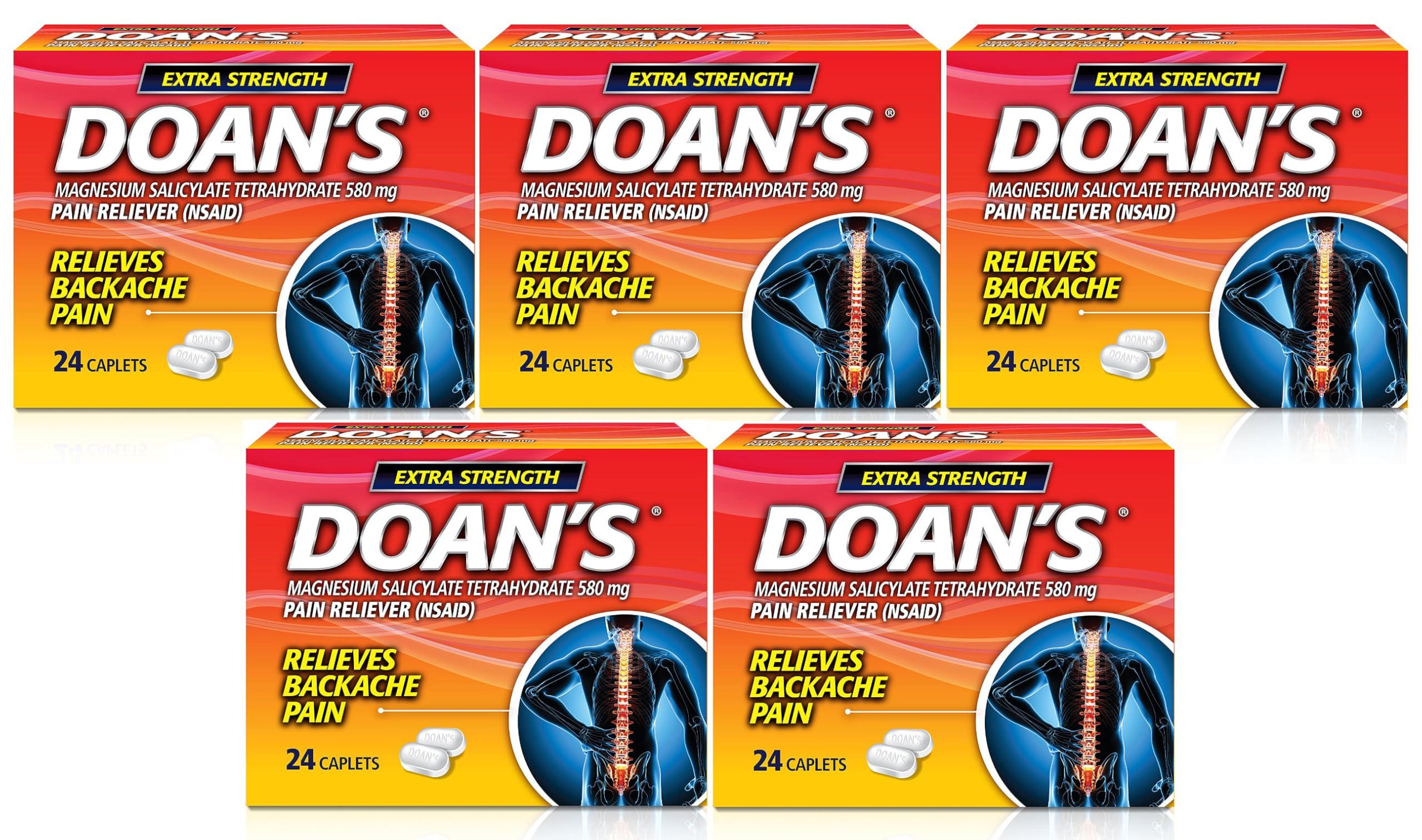 Doan's Extra Strength Pain Reliever, Magnesium Salicylate Tetrahydrate 580 mg, Relieves Backache Pain, 24 Caplets (Pack of 5)