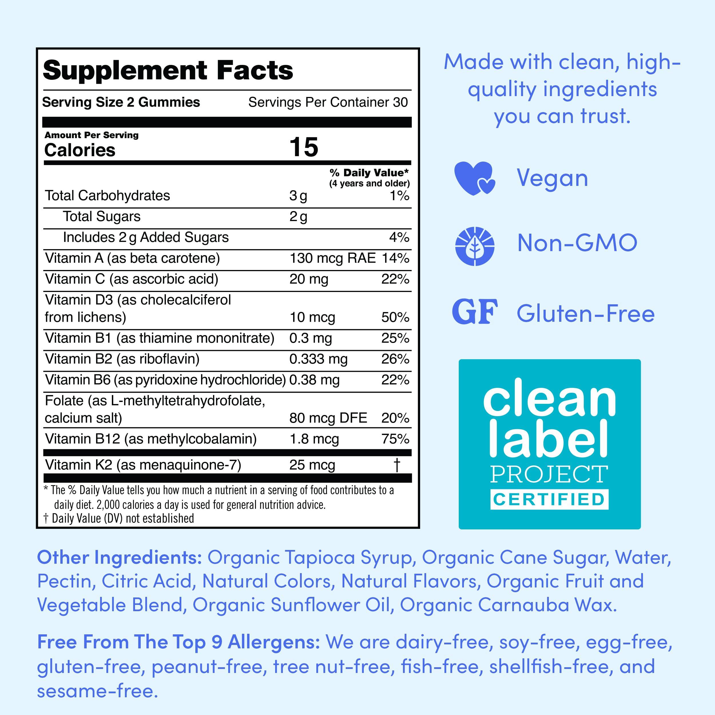 - Free of the Top 9 Allergens, Produced to the Highest Standards: Our vegan multivitamins are dairy-free, soy-free, egg-free, gluten-free, peanut-free, tree nut-free, fish-free, shellfish-free and sesame-free; meticulously sourced, made, and tested for purity and potency with no fillers, artificial colors, flavors, sweeteners, GMOs, or fad ingredients.