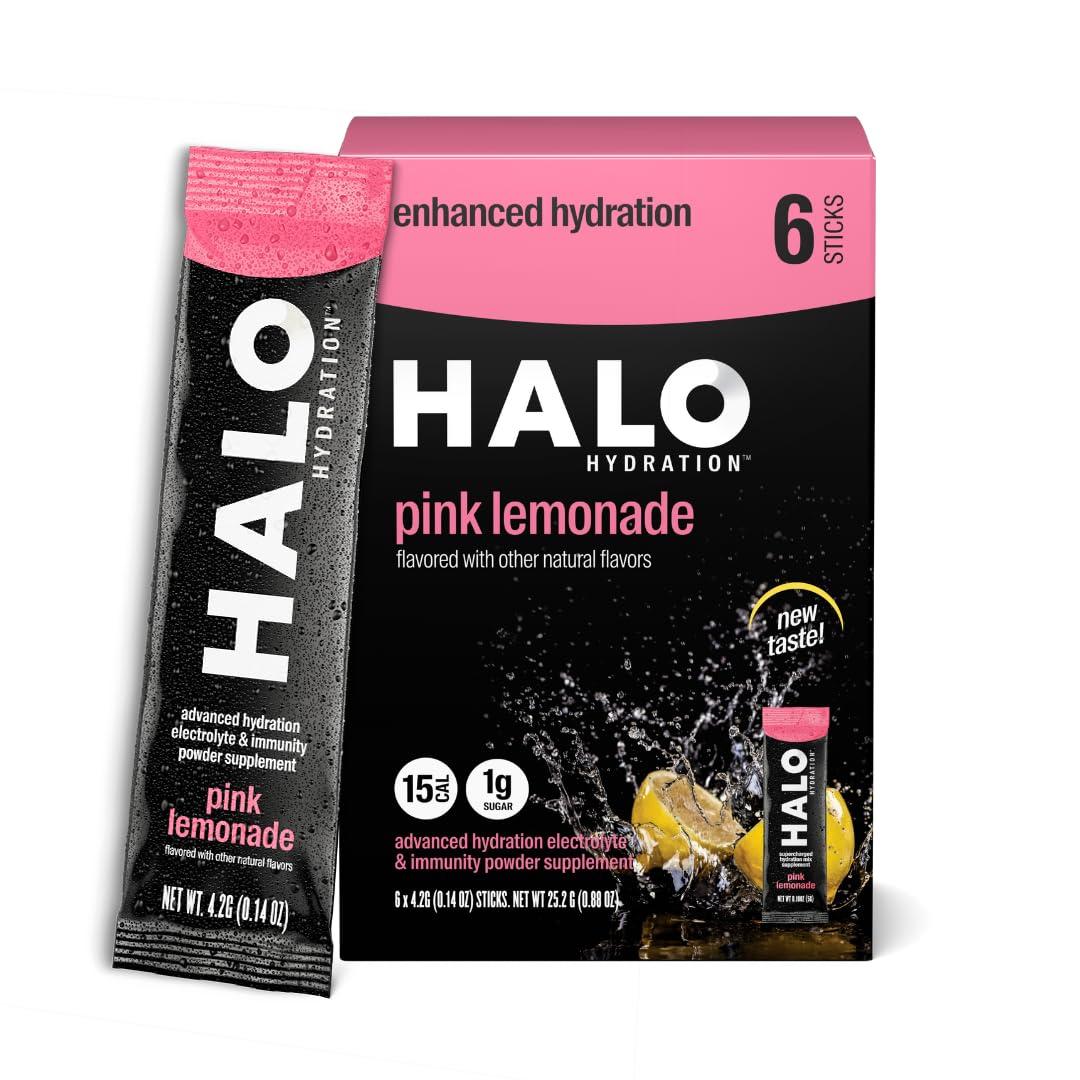 - PINK LEMONADE Hydrate with HALO's best-selling Pink Lemonade flavor, a refreshing blend crafted with premium ingredients and essential electrolytes for guilt-free hydration with a tangy twist.