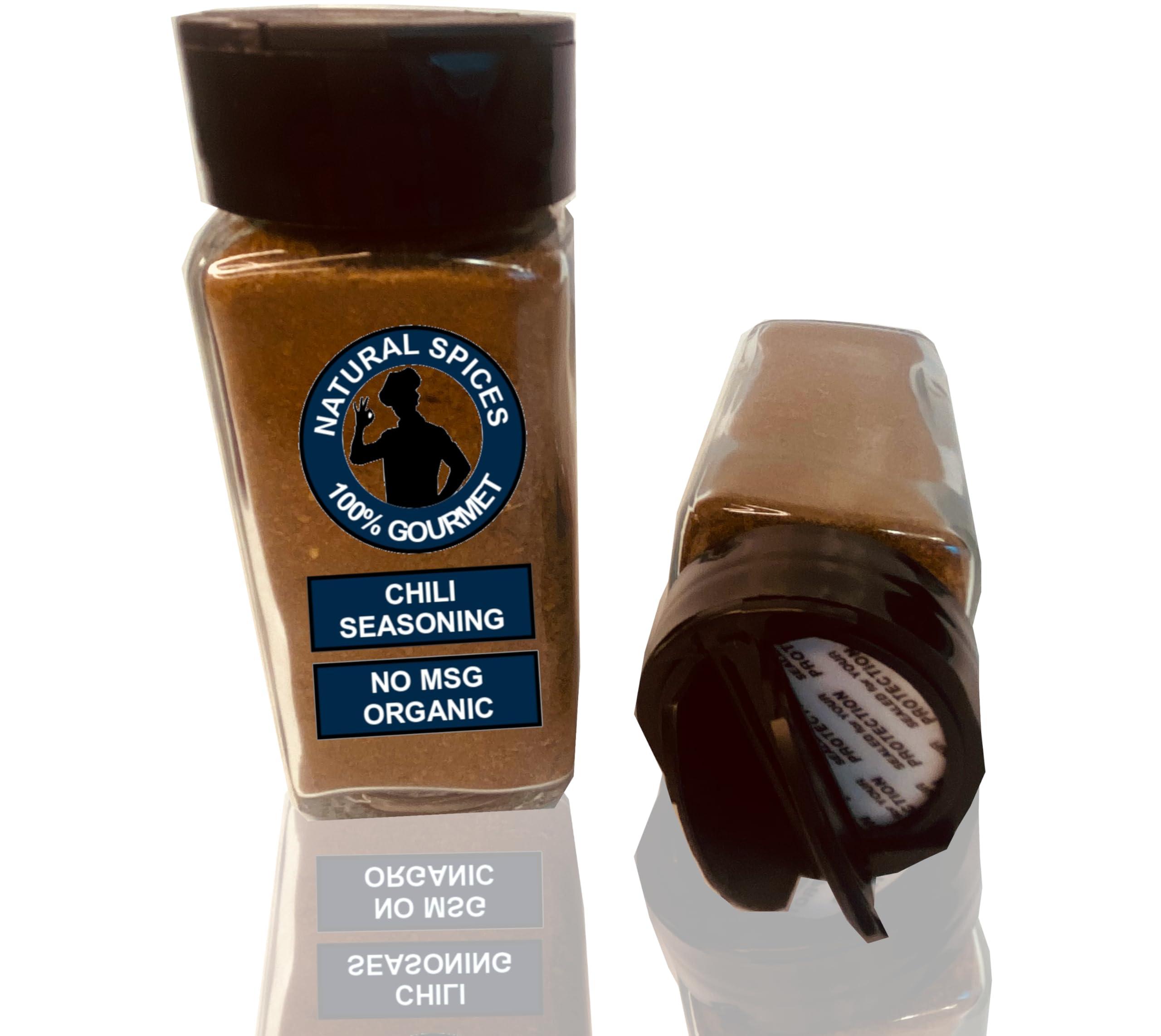 Our Organic Chili Powder! NO MSG, This premium seasoning is made from 100% natural ingredients and is free from any artificial flavors or preservatives. It's perfect for adding a spicy kick to your favorite recipes, whether you're cooking up a batch of chili, making tacos, or adding a dash of heat to your soups and stews. The chili powder is a blend of chili peppers, cumin, garlic, and other herbs and spices, and it has a rich, smoky flavor that will enhance the taste of any dish.
