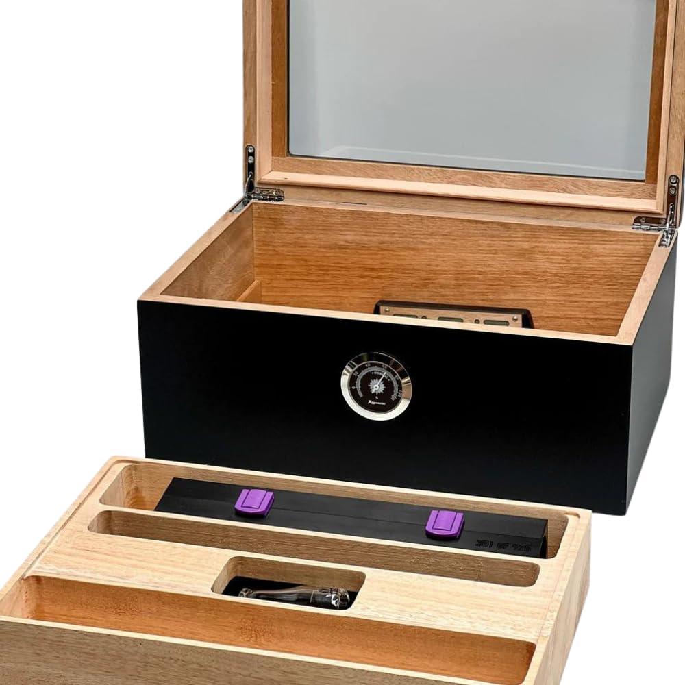The cannagar mold can hold around 42 grams and burns for up to 24 hours. That means you'll never have to stop the session to roll up again. Share it with your entire crew all night long. Your custom humidor, made from Mahogany wood, ensures the taste and terps stay perfect, unlike traditional cedar humidors. Use the reusable metal skewer to pack your cannagar with the perfect airflow. Once it's packed, let it cure for at least 4 days for the slowest, smoothest burn. Wrap your 42g in Native Leaf Wraps (included) to get the full flavor of your bud and top it off with a reusable Glass Tip for that classy feel.